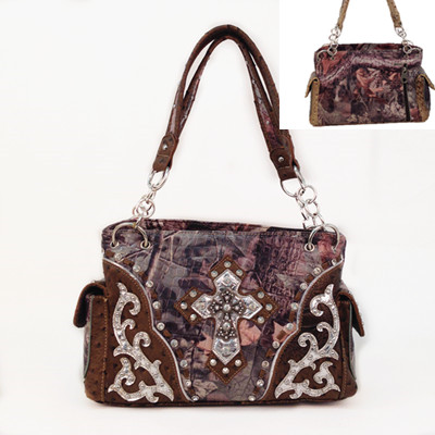 CONCEALED CARRY CROSS CAMO HANDBAG BROWN