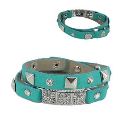 38-13032804 LEATHER BRACELET TURQ BLUE