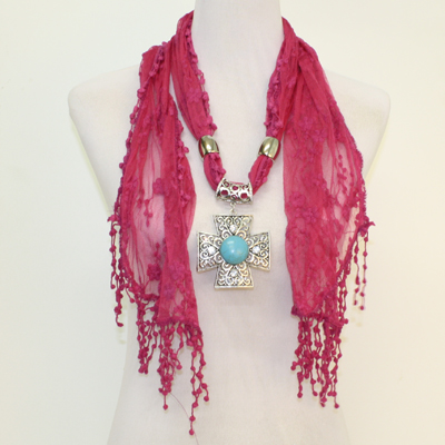 2013031110 LACE SCARF CROSS HOT PINK