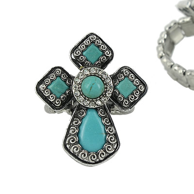 20-13051737 CROSS RING TURQUOISE CLEAR