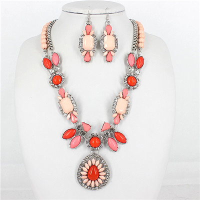 13071903 STONE DROP BIB NECKLACE ORANGE