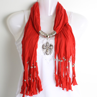 23-12112201 CROSS PENDANT SCARF RED