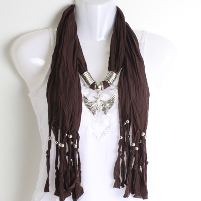 23-12112201 CROSS PENDANT SCARF DK BROWN