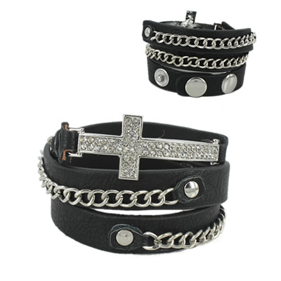 38-13032801 LEATHER CROSS BRACELET BLACK