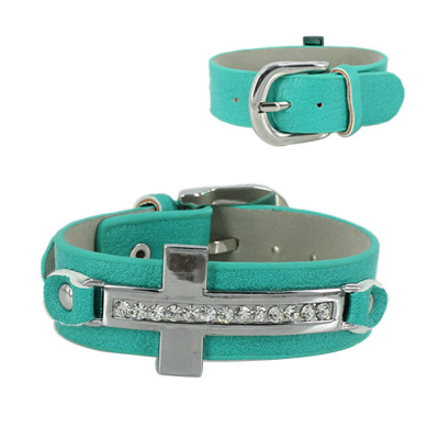 38-13032801 LEATHER CROSS BRACELET TURQ