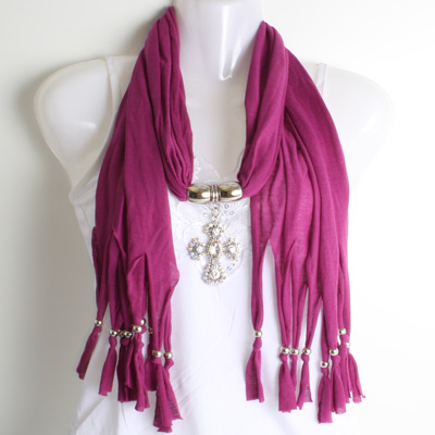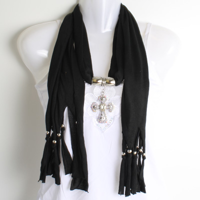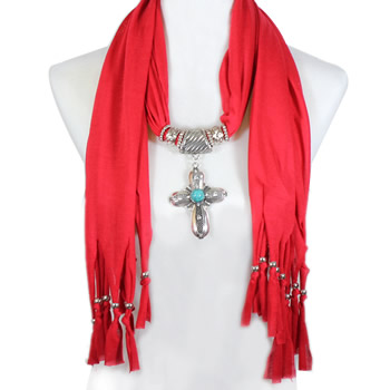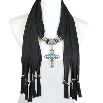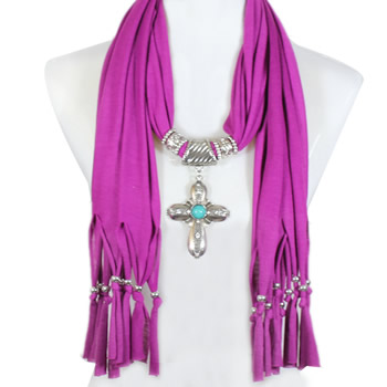 23-12112201 CROSS PENDANT SCARF DK BROWN