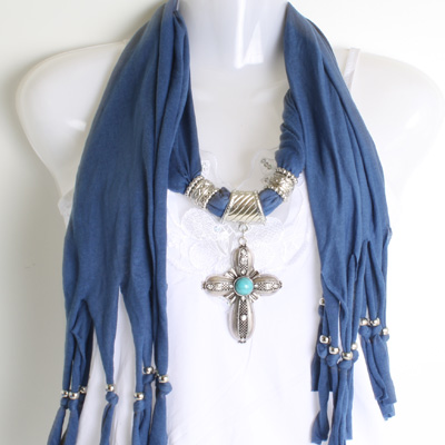 23-12070306 TURQUOISE CROSS SCARF BLUE