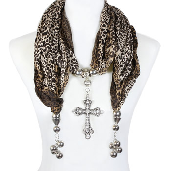 22-12070312 LEOPARD CROSS SCARF BROWN
