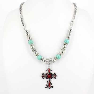 13-12090902 CROSS NECKLACE BLUE SAMLL