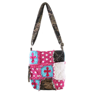 ZC05 TURQUOISE CROSS SCARF HOT PINK